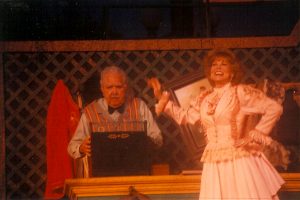 In the summer (July and August) of 1998, Nancy played Dolly Levi at The Galveston Island Outdoor Musicals in Texas with Broadway star Jack Dabdoub as Horace Vandergelder…yes, the same theater that Marilyn Maye had done it previously. As a matter of fact, Nancy sang to the instrumental tracks that were created for Marilyn Maye when SHE did it! This was at a 2000 amphitheater and therefore deserves inclusion in this book.